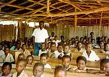 Major advances have been made in education, especially in the areas of access and teaching/learning conditions.[10] The gross enrollment rate has increased from a base of 49.7% in 1990 to 96% in 2004 and girls' enrollment from 36% in 1990 to 84% in 2004.[10] Gender balance and geographic equity have shown significant improvements in gross numbers of girls and children from disadvantaged areas attending primary schools.[10] Nonetheless, major constraints and challenges remain.[10]