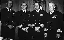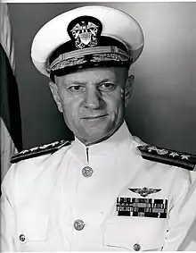 Feightner received orders in February 1959 to relieve the air wing commander of Carrier Air Group Ten (CVG-10) on the USS Forrestal (CV-59) that was deployed in the Mediterranean.[72] He continued to serve as CAG-10 when the air wing embarked on the USS Essex (CV-9) the following month and returned to the "Med" for another tour.[73] From February to July 1960, Feightner served on the staff of Carrier Air Group Four (CVG-4) where he helped write some of the first Naval Air Training and Operating Procedures Standardization (NATOPS) manuals with the goal of reducing the Navy's aircraft accident rate.[74] In July 1960, he reported to the Naval War College in Newport, Rhode Island, to study areas such as military tactics and wargaming. Feightner graduated in 1961.[75]