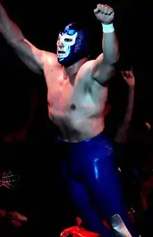 Also in the match: Bestia Salvaje, Blue Demon, Jr., Dr. Wagner, Jr., El Fantasma, Jr., Lizmark, Jr., Shigeo Okumura, Universo 2000 and Veneno defeated