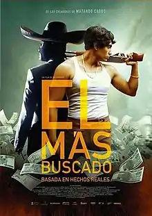 El más buscado ("The Most Wanted") is a 2014 Mexican crime film, directed and written by José Manuel Cravioto. The film was also released as Mexican Gangster: La Leyenda del Charro Misterioso and is based on the life of Alfredo Ríos Galeana, a real life bank thief, considered the most prolific thief in the history of Mexico. The film stars Tenoch Huerta as Ríos Galeana and shows his assaults, personal relationships and his career singing as a mariachi.[1]