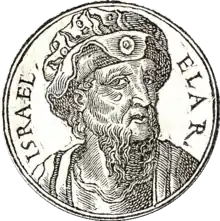Elah (Hebrew: אֵלָה ’Ēlā; Greek: Ἠλά; Latin: Ela) was the fourth king of Israel, the son and successor of Baasha. William F. Albright has dated his reign to 877–876 BCE, while E. R. Thiele offers the dates 886–885 BCE.[1]