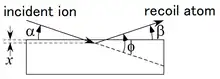 In an elastic scattering event, the kinematics requires that the target atom is recoiled with significant energy.[16] Equation 7 models the recoil kinematical factor that occurs during the ion bombardment.[16]