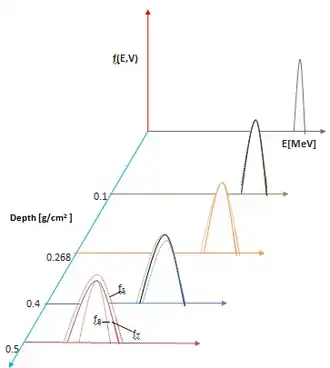 The energy distribution of straggling is divided into three domains depending on the ratio of ΔE i.e., ΔE /E where ΔE is the mean energy loss and E is the average energy of the particle along the trajectory.[32]