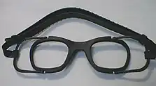 Eyeglasses can clash with elastomeric masks. Conventionally, full-face masks are modified, with prescription lenses inserted into the mask. Glasses can be worn over a half-mask, as long as they do not interfere with the seal or headstraps. Some users find this uncomfortable.[2][5] Wearing contacts is not possible where there is a risk of solvent vapours, and may not be advisable if there is an infection risk,[2] but otherwise contacts can be worn.[5]