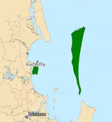 The division encompasses suburbs to the north and northeast of Brisbane, including Redcliffe, Woody Point, Scarborough, Clontarf and Margate, as well as parts of Kippa-Ring. The electorate's boundary stretches to take in Moreton Island.
