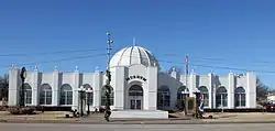 The Electric Park Pavilion is a pavilion located in Blackwell, Oklahoma, designed in 1912 by W.L. McAltee.[2] The pavilion was built as a "salute to electricity" and features a 160-foot domed ceiling, and an 800-seat auditorium.[3] The building was once lined with over 500 lights, on the dome, its 27 flag poles with American flags, and its 22 arched windows.[2] The Mission/Spanish Revival style building is made of brick and stucco, and was dedicated on March 23, 1913.[3]