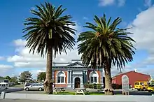 High Street (which runs through the centre of town - as part of State Highway 3 connecting Stratford, Ngaere, Normanby and Hāwera) and Bridge Street (which heads westward towards Kaponga and joins State Highway 45 near Ōpunake), were the first tar-sealed roads in New Zealand.[8][9]