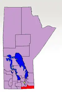 It was located in the southeastern corner of the province. It is bordered to the north by Carman, Morris, Steinbach and La Verendrye, to the west by Pembina, to the east by the province of Ontario and to the south by the American state of North Dakota. The riding included the communities/municipalities of Emerson, Altona, Dominion City, Rhineland, Gretna, Woodridge and St. Jean Baptiste.[1]