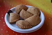 Gujia is similar to a sweet empanada, in a half moon shape.