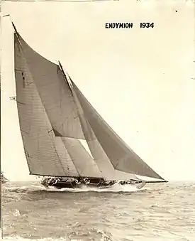 Endymion was an American schooner owned by George Lauder III, son of billionaire George Lauder. Lauder III was Commodore of the Indian Harbor Yacht Club in Greenwich, Connecticut. Endymion and her crew won many races and owned several records during her era.[1] The most notable of her records, held for five years, was the Transatlantic crossing record (Sandy Hook to The Needles) set in 1900 of 13 days 20 hours 36 minutes.[2]