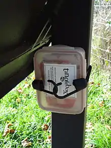 Geocaching is an outdoor recreational treasure hunt. Cache availability and sizes are dependent on those who place and maintain them. Erratic Rock State Park features at least one traditional size cache.[24] Erratic Park is a participant to the geocaching alternative sport, Tangleboxing, which was created and is hosted by Yamhill County and City of McMinnville Parks and Recreation. Tanglebox is an outdoor summertime treasure hunt.[25] Tangleboxes have been hidden in eleven different Yamhill Park sites. The tanglebox is clearly labeled, but hidden.