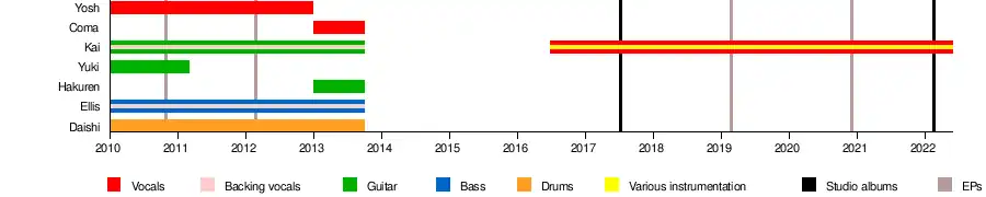 • Kai – guitar (2010–2013, 2016–present), lead vocals, bass guitar, drums, composer (2016–present)