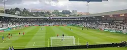 The stadium is equipped with an irrigation system using pop-up sprinklers, two electronic scoreboards, changing rooms, cafeteria, offices, area for radio, press and TV, VAR technology, CCTV system, LED lighting, anti-doping room, fire system, lighting and emergency public address, etc... It also has a heated indoor pool and other sports facilities (Gym, Climbing wall, spa, pond for kayak-polo, Skate park...) It also has an annex field of 93 x 58.5 m of natural grass and since 2004, 2 Artificial grass 7-a-side soccer fields.