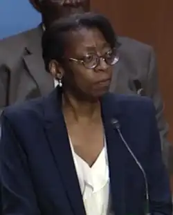 On May 12, 2021, President Joe Biden nominated Lee to serve as a United States circuit judge for the Second Circuit to the seat vacated by Judge Robert Katzmann, who assumed senior status on January 21, 2021.[6] On June 9, 2021, a hearing on her nomination was held before the Senate Judiciary Committee.[7] During her confirmation hearing, she distanced herself from the contents of a letter she wrote as an Ohio State undergrad in 1991, which talks about Thomas being a "black conservative."[8] On July 15, 2021, her nomination was reported out of committee by an 11–10 vote, with Senator Lindsey Graham passing on the vote.[9] On August 3, 2021, Majority Leader Chuck Schumer filed cloture on her nomination.[10] On August 5, 2021, the Senate invoked cloture on her nomination by a 50–49 vote.[11] On August 7, 2021, her nomination was confirmed by a 50–47 vote.[12][13][14] Upon confirmation, Lee became the longest-serving public defender to ever serve as a judge on a U.S. Court of Appeals. She is the second African American woman ever to serve on the Second Circuit and was the only judge with experience as a federal defender serving on that circuit court until the confirmation of Sarah A. L. Merriam.[15] She received her commission on August 16, 2021.[16]