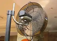 The evaporative cooler was the subject of numerous US patents in the 20th century; many of these, starting in 1906,[2] suggested or assumed the use of excelsior (wood wool) pads as the elements to bring a large volume of water in contact with moving air to allow evaporation to occur. A typical design, as shown in a 1945 patent, includes a water reservoir (usually with level controlled by a float valve), a pump to circulate water over the excelsior pads and a centrifugal fan to draw air through the pads and into the house.[3] This design and this material remain dominant in evaporative coolers in the American Southwest, where they are also used to increase humidity.[4] In the United States, the use of the term swamp cooler may be due to the odor of algae produced by early units.[5]