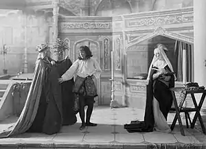 The Everyman play was first brought to the cinema in 1913 using the Kinemacolor two-color process that projected black-and-white film through red and green filters to produce an early form of color movie.[6] Linda Arvidson, a well-known actress who was recently separated from her movie producer husband D.W. Griffith, was cast in the title role, as she at the time was the leading lady for Kinemacolor studios. Unfortunately, Kinemacolor's parent company in Britain collapsed right after release of the movie, and Arvidson's estranged husband bought out the California operations of Kinemacolor, which included rights to their United States film releases.[7] Griffith's acquisition of the Everyman film meant that distribution was a low priority, and despite the Broadway success of the play, the casting of a high-profile actress, and the novelty of color, the film made little impact. Subsequently, Crawley-Maude Features, which was owned by former Everyman leading lady Constance Crawley and her manager Arthur Maude, produced in 1914 their own film adaptation of Everyman, which did little better than the Kinemacolor version.[8]