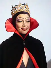 Individualist feminist Camille Paglia said that she used to be transfixed by this "temperamental diva bitch", due to the contrast with the ideal of womanhood that she had been presented to as a child: "Mary, this silent mother; and here was the witch queen who has this weird dialogue in the mirror and it didn't have to be charitable and it didn't have to be nice. I thought she was fabulous."[279] Likewise, Lana Parrilla, who later herself played the Evil Queen in Once Upon A Time, said that whenever she watched Disney's Snow White as a young girl she rooted for and "loved the evil queen―every time the evil queen came on, I was like 'OK!' She was just so fascinating to me."[280] Author Deborah Lipp wrote: "As I've said before and will doubtless say again, given a choice of being Snow White (helpless, sweet, voiceless) and the Wicked Queen, with the cool castle and the magic and the minions, give me my Magic Mirror now!"[281] Film director John Waters said he too rooted for the evil queen to win,[282] and Chay Yew said that if he were a Disney character, he would be the evil queen from Snow White.[283]