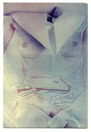 Kuryluk's distinct style of painting and her rebellious nature brought her in conflict with her professors.[1] In 1967 she was granted permission to organize an independent show of student work, including her own, in the staircase of the painting department. The unusual event drew crowds and was reported in the press. However the authorities did not like the stir and she was forbidden to continue.[2] Kuryluk began to export her work clandestinely and to exhibit abroad. Her first solo show at the Woodstock Gallery in London coincided with her final exams in Warsaw, and she kept it secret. In 1976, the Year of the Political Prisoner, she donated work to Amnesty International. In the late 1970s she and her friends, the painters Andrzej Bieńkowski, Andrzej Bielawski and Łukasz Korolkiewicz formed a group with the ironic name “Cream”. Taking advantage of some liberalization under Edward Gierek, she organized an independent international art exhibition, “The Garden of Knowledge” in June 1981, hoping to turn it into a biennial event.[3]