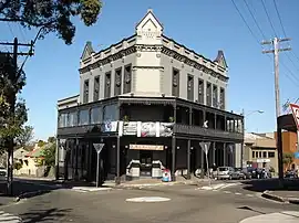 The Exchange Hotel was the last pub to be built during the local boom of the 1880s. It was also the largest in the Balmain and Rozelle area. The original building consisted of 40 rooms connected with 2.1-metre-wide (7 ft) corridors. The pub became a major meeting point for the local community and in the early years as the centre for union members, including those of the Balmain Labourers Union which later went on to become the Painters and Dockers Union.[1][2]