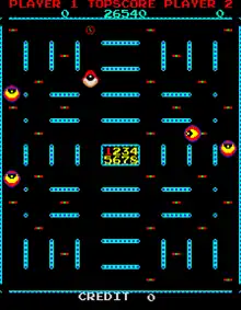 Eyes is a maze shooter arcade game created by Miami-based developer Digitrex Techstar and published in 1982 by Rock-Ola.[1] It was licensed for the European market by Zaccaria with different cabinet art.[2]