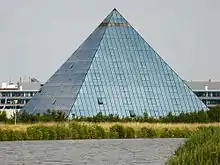 Hotel-Pyramide on the east bank of the Rhine–Main–Danube Canal with a glass outside facade