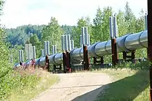 The construction of Ladd Army Airfield starting in 1939, part of a larger effort by the federal government during the New Deal and World War II to install major infrastructure in the territory for the first time, fostered an economic and population boom in Fairbanks which extended beyond the end of the war. In the 1940s the Canol pipeline extended north from Whitehorse for a few years. The Haines - Fairbanks 626 mile long 8" petroleum products pipeline was constructed during the period 1953-55.[18] The presence of the U.S. military has remained strong in Fairbanks. Ladd became Fort Wainwright in 1960; the post was annexed into Fairbanks city limits during the 1980s.