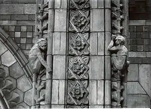 Farmer & Brindley employees included C. J. Allen, who was with the firm for ten years, John William Kitson (architectural sculptor) apprenticing 1860 – 1868 before moving to Philadelphia and then New York City, Francis Child, and Harry Bates, who apprenticed with them from 1869 to 1879.[3] In 1887, the firm employed Furio and Attilio Piccirilli who had recently migrated from Italy to work on the reredos and altar then being carved for St Paul's Cathedral.[4] (These same Piccirillis became among the most notable fine stonecarvers in turn-of-the-century New York City.) According to Ward-Jackson, the St Paul's reredos had been designed by Bodley and Garner and were to be the firm's magnum opus, but they met a hostile reception and were removed. also Léon-Joseph Chavalliaud, Amongst the works Chavalliaud completed during the fifteen or so years he remained in Britain were eight statues in bronze and marble of famous naturalists and explores including Mercator, Linnaeus, Henry the Navigator, Columbus, Darwin and Captain Cook c.1896. These surrounded the exterior of the Palm House in Sefton Park, Liverpool.[5]