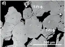 The mineral grains can be dissolved when there is fluid flow. The spaces originally occupied by the minerals will be spare as voids, increasing the porosity of rock.[2] The minerals that are usually dissolved are feldspar, calcite and quartz.[1] Grain dissolution pores results from this process can enhance porosity.