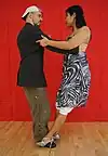 Doble frenteMoving together in one direction.The woman is in front of the man (see tango al reves style).