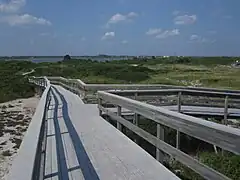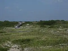 The Otis Pike Fire Island High Dune Wilderness, also known as Fire Island Wilderness, is a 1,380-acre (5.6 km2; 2.16 sq mi) wilderness area on Fire Island.[5] It is approximately seven miles (11 km) long and located on the eastern side of Fire Island. The United States Congress designated the Otis Pike High Dune Wilderness Area in 1980. The wilderness area is named for former New York Congressman Otis G. Pike, who co-sponsored the bill which created the Fire Island National Seashore and worked hard to secure public support and the legislation's passage through Congress to establish the new national park. It is the only federally designated wilderness area in New York State and one of the smallest wilderness areas managed by the National Park Service.[5]