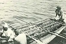 Filleted Ngege Oreochromis esculentus being brought ashore in 1927