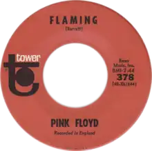 "Flaming" was also the third US Pink Floyd single (Tower 378) and was released by Tower Records, but it did not chart. The mono US single mix of "Flaming" is slightly edited from other stereo or mono versions of the recording. This US single was released in place of the UK single, "Apples and Oranges" (backed with "Paint Box"), which had then just failed to break into the UK charts.[5]