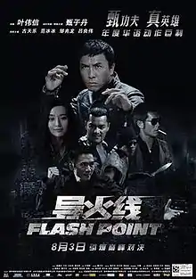 Flash Point (traditional Chinese: 導火綫; simplified Chinese: 导火线) is a 2007 Hong Kong action film directed by Wilson Yip and starring Donnie Yen, who also produced with Nansun Shi and Zhang Zhao. The film co-stars Louis Koo, Collin Chou, Lui Leung-wai, Fan Bingbing and Xing Yu.[1] Yen plays Ma Jun, a police sergeant who plants his partner Wilson (Louis Koo) as a mole in a pursuit against a triad led by three Vietnamese brothers (played by Chou, Lui and Xing).