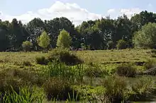 The site was open moorland in the Middle Ages, but it was converted to agricultural land in the nineteenth century. The central area is pasture with a strip of woodland around the edge. Other habitats are fen and wetland. Trees there include osiers.[1][3]
