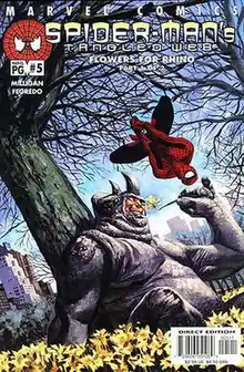 "Flowers for Rhino" is a Spider-Man story by Peter Milligan and Duncan Fegredo. Published in 2001, it is a pastiche of the science fiction story Flowers for Algernon. "Flowers for Rhino" appeared in Spider-Man's Tangled Web #5–6.