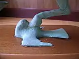 The Flying Horse of Gansu,[1] also known as the Bronze Running Horse (銅奔馬) or the Galloping Horse Treading on a Flying Swallow (馬踏飛燕), is a Chinese bronze sculpture from circa the 2nd century CE. Discovered in 1969 near the city of Wuwei, in the province of Gansu, it is now in the Gansu Provincial Museum. "Perfectly balanced," says one authority, "on the one hoof which rests without pressure on a flying swallow, it is a remarkable example of three-dimensional form and of animal portraiture with the head vividly expressing mettlesome vigor."[3]
