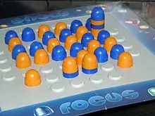 Focus is an abstract strategy board game, designed by Sid Sackson and first published in 1963 by Kosmos. The game has been re-published many times since, sometimes under the titles Domination or Dominio. Focus won the 1981 Spiel des Jahres and Essen Feather awards. The game appears in Sackson's A Gamut of Games in the section New Battles on an Old Battlefield.