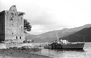 They were designed to detect and attack hostile submarines, including midget submarines in inshore waters such as the approaches to large ports.[2][3] They were powered by diesel engines and were planned to be armed with a single barreled Squid anti-submarine mortar. This special version of the Squid was a failure however, with the first Ford-class boat, HMS Shalford being fitted with a normal three-barreled Squid and the remaining vessels with a more conventional anti-submarine armament of depth-charge throwers. A single Bofors 40 mm gun completed the armament.[2]