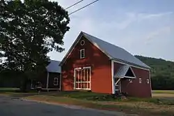 Across the street from the house stand the barn and stable, both built in the 1890s. Both are single-story wood-frame structures with the gable end toward the street. The barn stands south of the stable, and has a sliding door on the main facade, above which is a sash window and a round louvered vent. The side elevation has an entrance door sheltered by a portico. South of the house lies the family cemetery, a rectangular plot extending along the road.[2]