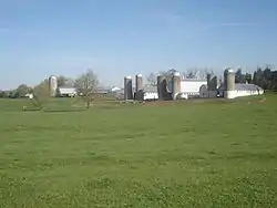 Four Locust Farm, also known as Pettus Dairy Farm, is a historic home and farm complex located near Keysville, Charlotte County, Virginia. The property includes a vernacular farm house dwelling, built around 1859, and a row of 20th-century farm buildings. The house is a two-story, three-bay-wide, frame dwelling that is covered by a low-pitched, hipped roof of standing-seam metal, and clad with weatherboards. Farm buildings include frame and masonry dairy/hay barns, silos, a milk house, workshop, equipment sheds, cattle pens, and tenant houses. The farm produced tobacco from 1919 until 1925; beginning in 1925, the farm turned to dairy production with a 100-head Holstein-Friesian herd. In 1962, the farm ended its dairy operations and turned to beef cattle production. The farm is now owned and operated by Pettus's grandson, Zach Tucker.[3]