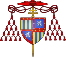 Born at Carcassonne, François de Joyeuse was the second son of Guillaume de Joyeuse[2] and Marie Eléanor de Batarnay. As the younger son of a seigneur in an intensely religious family of bishops and soldiers,[3] he was destined for a career in the church. He studied in Toulouse, then at the Collège de Navarre, Paris, and received his doctorate degrees in canon and civil law at the University of Orléans. Thanks to the influence of his elder brother Anne de Joyeuse, a favourite of King Henry III of France who created him duke and peer in 1581,[4] he became a privy councillor to the King and rose rapidly in the church. He was made Archbishop of Narbonne on 20 October 1581 (with a papal dispensation for not having reached canonical age), a cardinal on 12 December 1583 [5] (still aged only 21), Archbishop of Toulouse on 4 November 1588, and Archbishop of Rouen on 1 December 1604.[6] He was a Knight of the Order of the Holy Spirit.