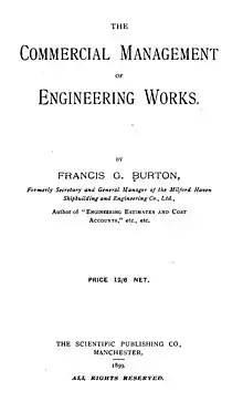 - Francis G. Burton. The Commercial Management of Engineering Works. (1899)