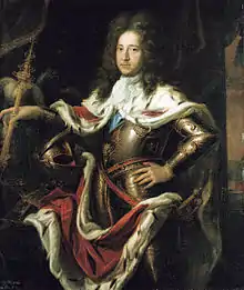 Frederick I (German: Friedrich I.; 11 July 1657 – 25 February 1713), of the Hohenzollern dynasty, was (as Frederick III) Elector of Brandenburg (1688–1713) and Duke of Prussia in personal union (Brandenburg-Prussia). The latter function he upgraded to royalty, becoming the first King in Prussia (1701–1713). From 1707 he was in personal union the sovereign prince of the Principality of Neuchâtel (German: Fürstentum Neuenburg).