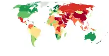 World map of the Reporters Without Borders World Press Freedom Index 2016.