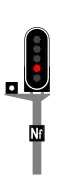 Disk (one yellow light and one red light, both aligned horizontally): slow down and advance carefully to the next signal.