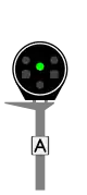 In several stations and on several line sections, when the local layout requires it, signals can be set on the right. They are then equipped with a white arrow indicating the way to which they are addressed.