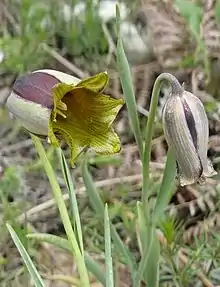 Fritillaria acmopetala, the pointed-petal fritillary,[3] is a species of flowering plant in the lily family Liliaceae, native to rocky limestone mountain slopes in the Middle East. It was described by the Swiss botanist Pierre Edmond Boissier in 1846.