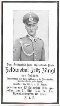 Fritz Zängl (13 December 1914 – 21 May 1942) was a German skier and soldier, at last in the rank of a Feldwebel.