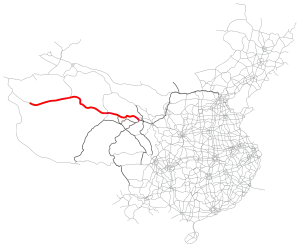 The section near Xining forms a southern beltway around the city.[3] Between Xining and Hotan, it will pass along Huangyuan, Ruoqiang, Qiemo, Minfeng and Yutian.[4]