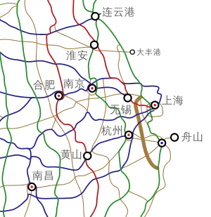 The Changshu–Taizhou Expressway (Chinese: 常熟—台州高速公路; pinyin: Chángshú–Tāizhōu Gāosù Gōnglù), designated as G1522 and commonly referred to as the Changtai Expressway (Chinese: 常台高速公路; pinyin: Chángtāi Gāosù Gōnglù), is an expressway that connects the cities of Changshu, a satellite city of Suzhou, in the province of Jiangsu, China, and Taizhou, in the province of Zhejiang. When fully complete, it will be 339 km (211 mi) in length. The expressway is a spur of the G15 Shenyang–Haikou Expressway. The spur line splits off from the main expressway at Changshu and passes through the cities of Suzhou, Jiaxing, and Shaoxing before rejoining the main expressway just north of Taizhou, Zhejiang.